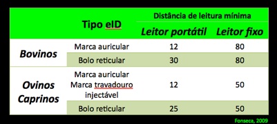 Assim, considerando que em Portugal o tipo de identificador eleito pela DGV para normalmente identificar ovinos e caprinos é o bolo reticular e que a distância mínima de leitura é de 20 cm para leitores portáteis, cremos ser, também no mínimo de bom senso, que a autoridade competente proíba a venda de leitores com características de desempenho inferior aos referidos na legislação, para este tipo de utilização.